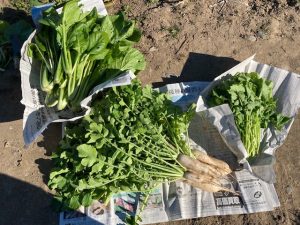 大切に育て野菜、教えていただいたように半分は