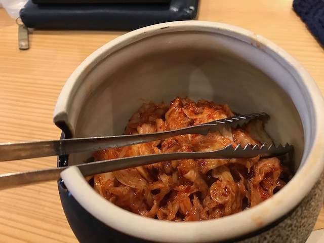そしてその隣りにあるツボは無料で出てくるキムチです