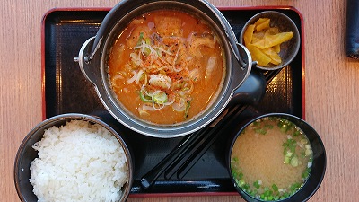 ピリ辛みそのもつ煮定食、うまぁ↑↑