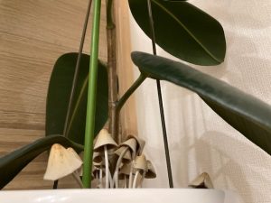 先日、自宅のゴムの木からきのこが生えているのを