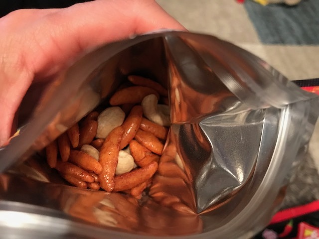 まずは柿の種「激シビ辛ラー油味」