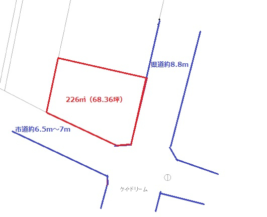 | 接道 | 南 6.5m(幅員) 市道 東 8.8m(幅員) 県道 |