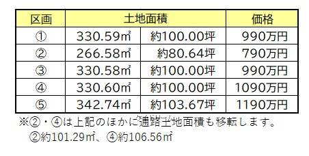 | 所在地 | エリア | 土地権利 | 土地面積 坪単価 |