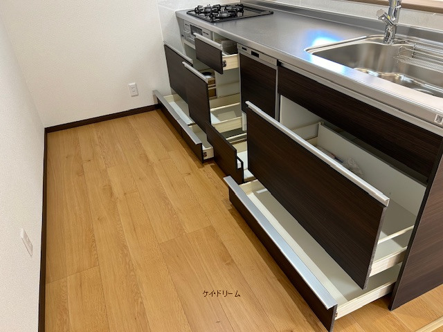 キッチンは、 一度に複数のおかず作りが可能な3口コンロ、食後のお皿洗いがスムーズなカウンターキッチン。忙しい毎日をサポートします。