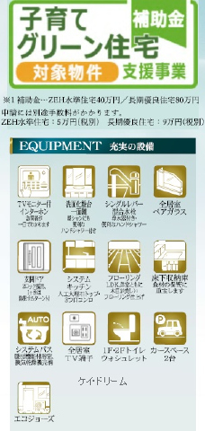| 特色 | ★公営水道、★公共本下水、★個別プロパンガス、電気、閑静な住宅街、区画整理地内・分譲地内、整形地、日当り良好、駐車場2台以上、建築基準法第22条、バリアフリー、3口以上コンロ、カウンターキッチン、システムキッチン、全室南向き、床下収納、床下収納(台所・洗面所)、モニター付インターホン、洗髪洗面化粧台、24時間換気システム、省エネ給湯器、バス1坪以上、追焚機能、システムバス、浴室乾燥機、温水洗浄便座、クローゼット、ペアガラス、南バルコニー、外水道、外構付き、★洪水浸水想定区域:なし、スーパー徒歩約10分圏内、コンビニ徒歩約10分圏内、フラット35S、ウォークインクローゼット、パントリー、トイレ2ケ所 | |||||||||||||||||