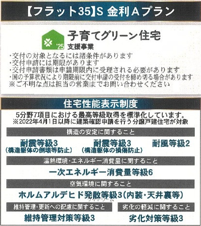 | 特色 | フラット35S、★公営水道、★公共本下水、★浄化槽、電気、区画整理地内・分譲地内、整形地、日当り良好、駐車場2台以上、バリアフリー、3口以上コンロ、カウンターキッチン、システムキッチン、ユニットバス、モニター付インターホン、洗髪洗面化粧台、24時間換気システム、省エネ給湯器、追焚機能、浴室乾燥機、温水洗浄便座、クローゼット、ペアガラス、外水道、外構付き、建築基準法第22条区域、コンビニ徒歩約10分圏内、★洪水浸水想定区域:0.5m〜3m未満、南バルコニー、インナーバルコニー | |||||||||||||||||