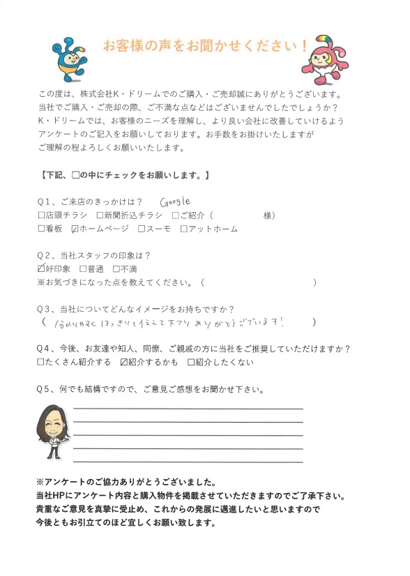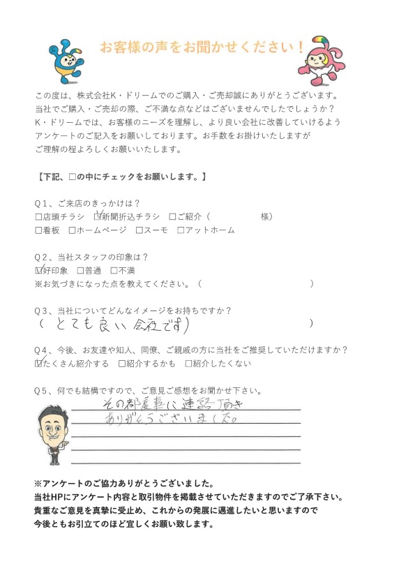 この度は、物件を紹介していただき、本当にありがとうございました!!
